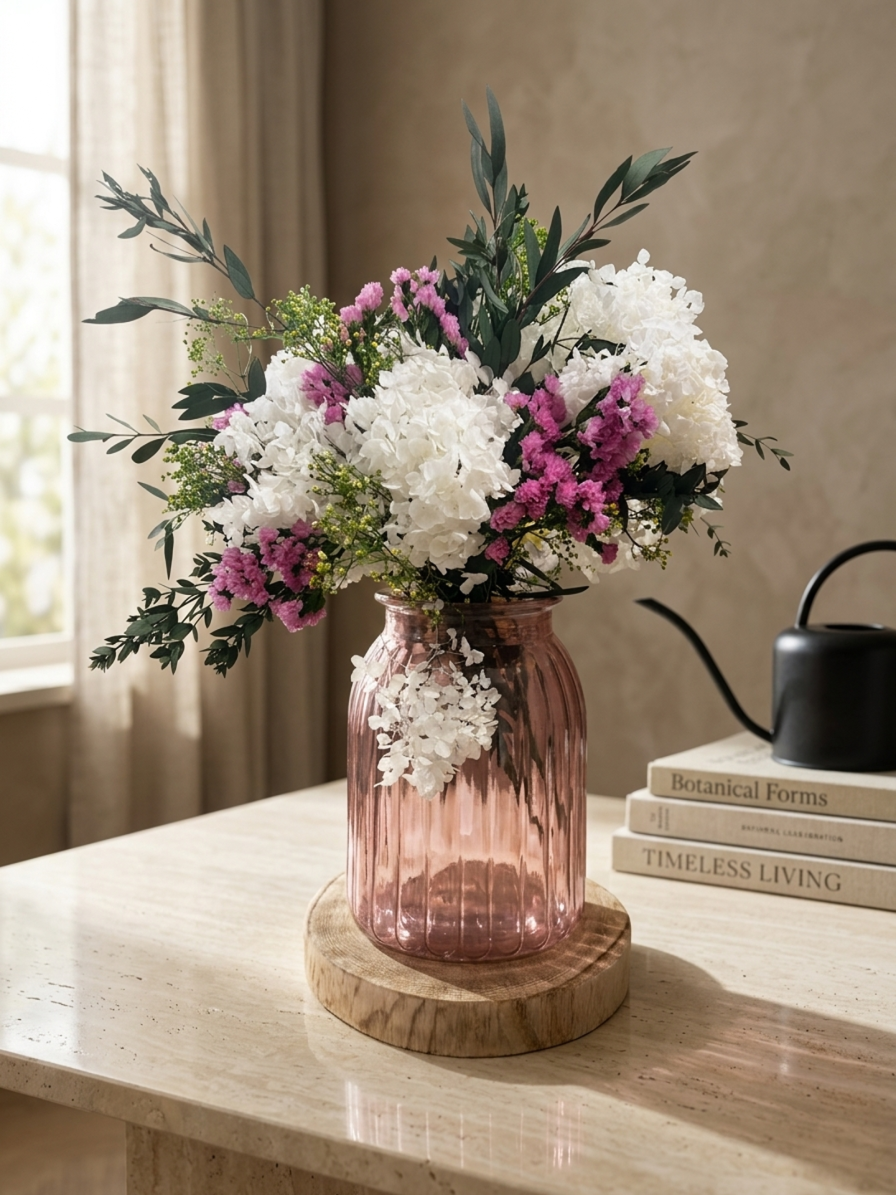 Arreglo Floral «Amanecer Silvestre» en Cristal Rosado